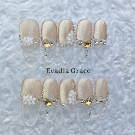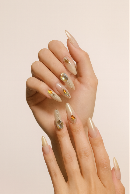 Beautifully designed nails. The gems and flowers stay secure and the nails feel super comfortable to wear.
